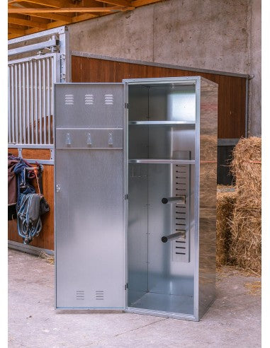 Fabriquée à Saint-Martin d'Hères en Isère, la Saint-Martin est l'armoire de sellerie emblématique de la marque Equitarc. Seule ou en groupe, elle est idéale pour aménager vos écuries ! Avec son design hermétique mais aéré, accrochez un cadenas ou utilisez la serrure pour ranger votre équipement d'équitation en toute sécurité.