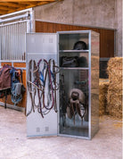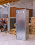Découvrez la Saint Martin, le produit phare de la marque Equitarc. Cette armoire de sellerie est fabriquée à Saint Martin d'Hères en Isère. Utilisée seule ou en groupe, elle est un choix parfait pour aménager vos écuries. Hermétique mais aérée, elle est équipée d'un cadenas ou d'une serrure pour ranger en toute sécurité votre équipement d'équitation. La Saint Martin est fixe, en acier galvanisé anticorrosion, et mesure 1,90 mètres. Elle est également dotée de plusieurs aérations pour le rangement du matériel équestre.
